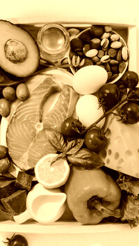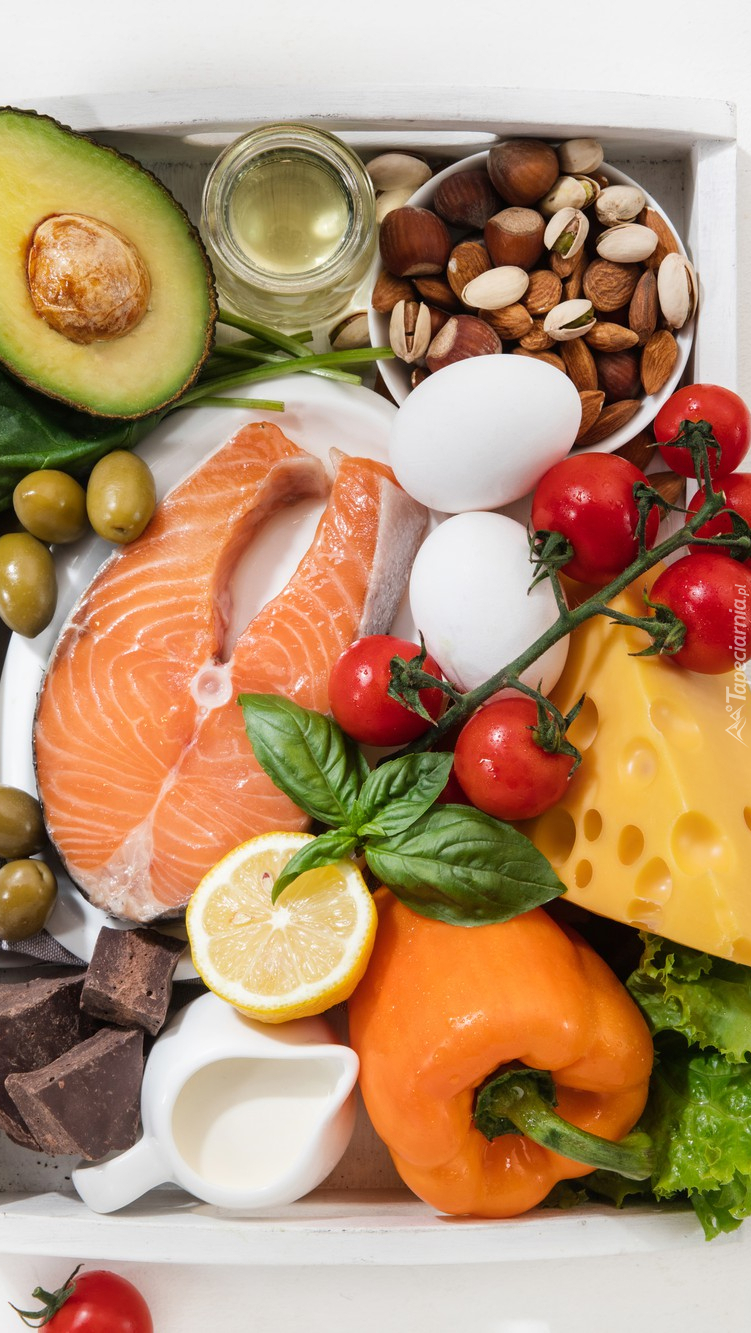 Edytor tapety: Ryba pośród warzyw i owoców