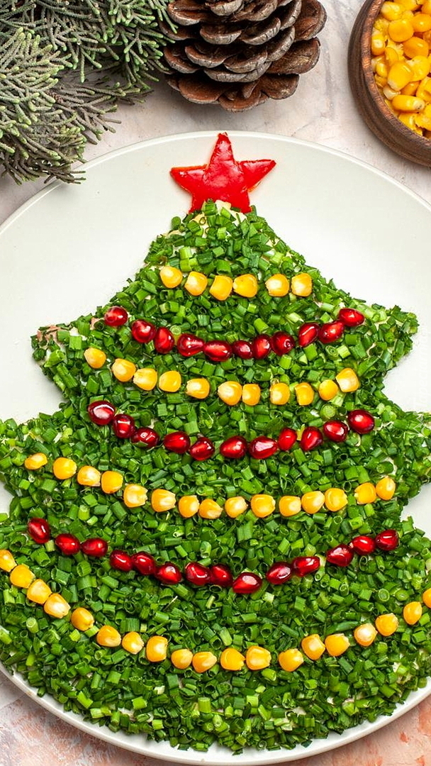 Edytor tapety: Choinka z pokrojonego szczypiorku i kukurydzy