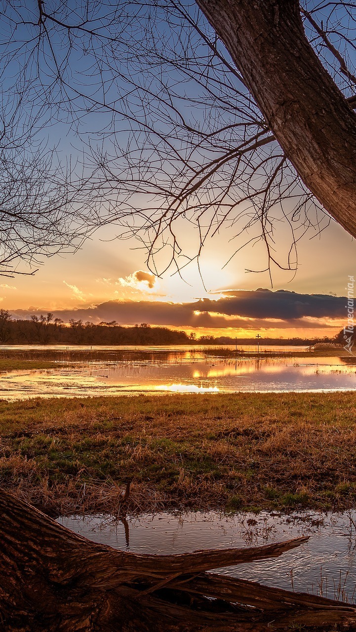 Edytor tapety: Zachód słońca nad rzeką Łabą