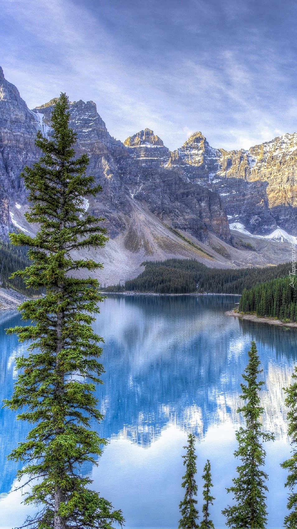 Edytor tapety: Wysmukłe świerki nad jeziorem