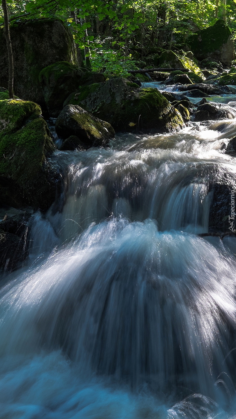 Edytor tapety: Omszałe kamienie przy leśnym potoku