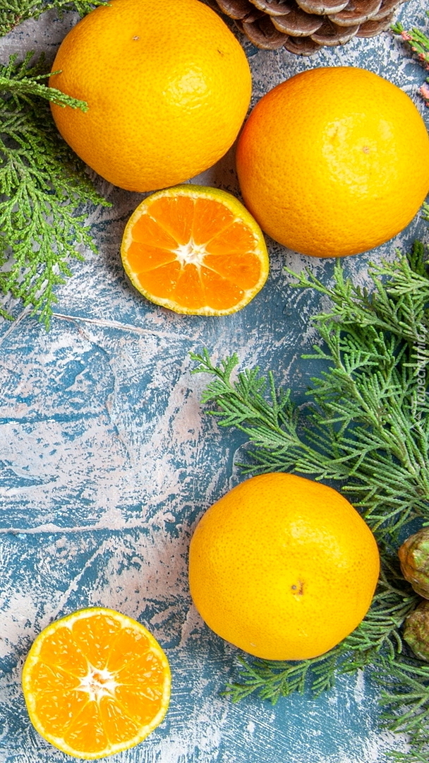 Edytor tapety: Mandarynki obok gałązek