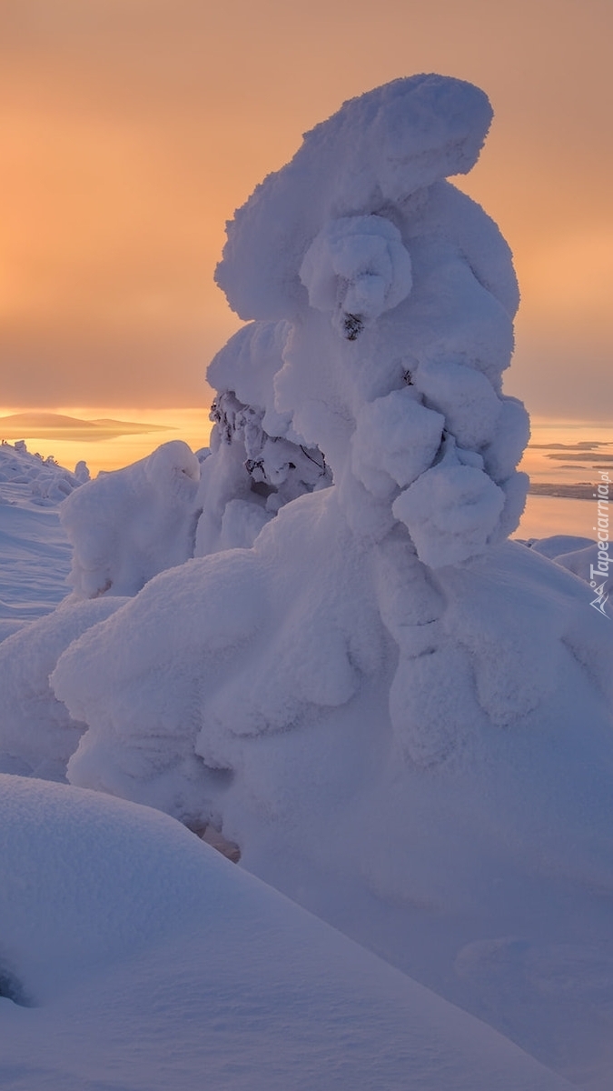 Edytor tapety: Zaśnieżone drzewo nad zatoką Kandałaksza