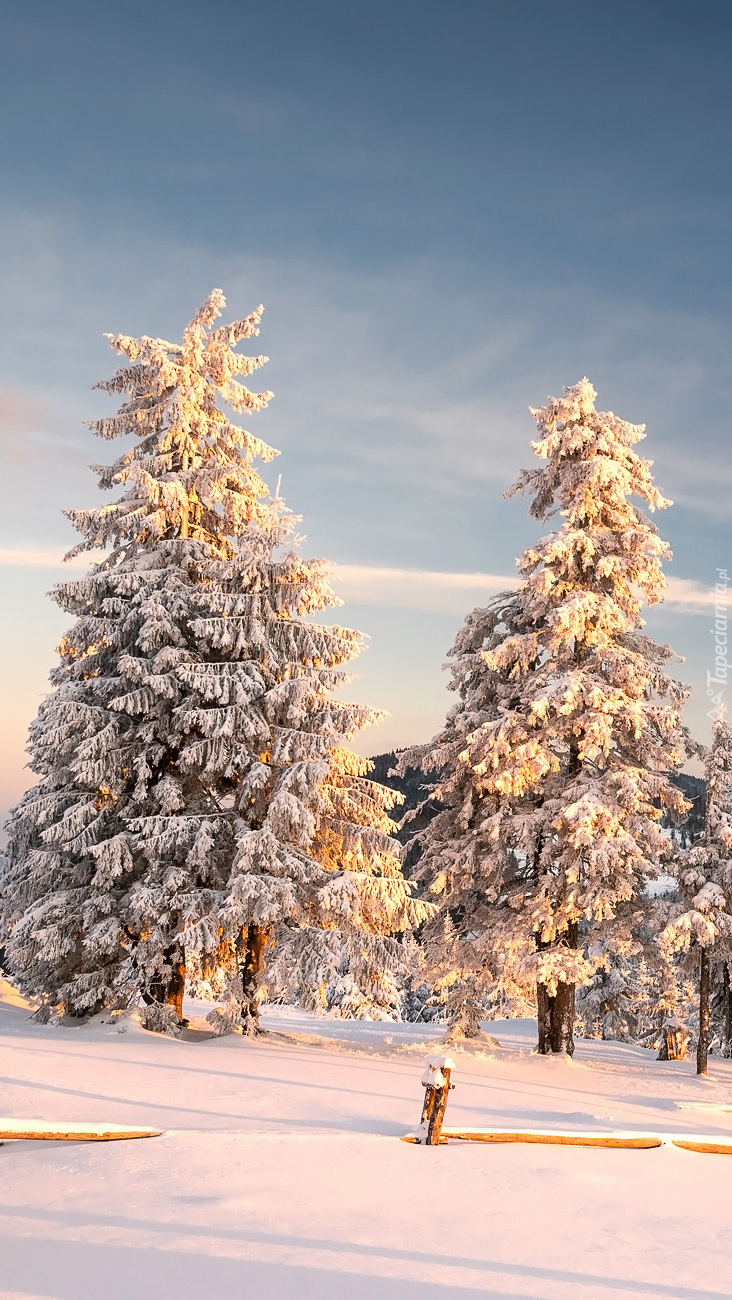 Edytor tapety: Ośnieżone drzewa obok ogrodzenia