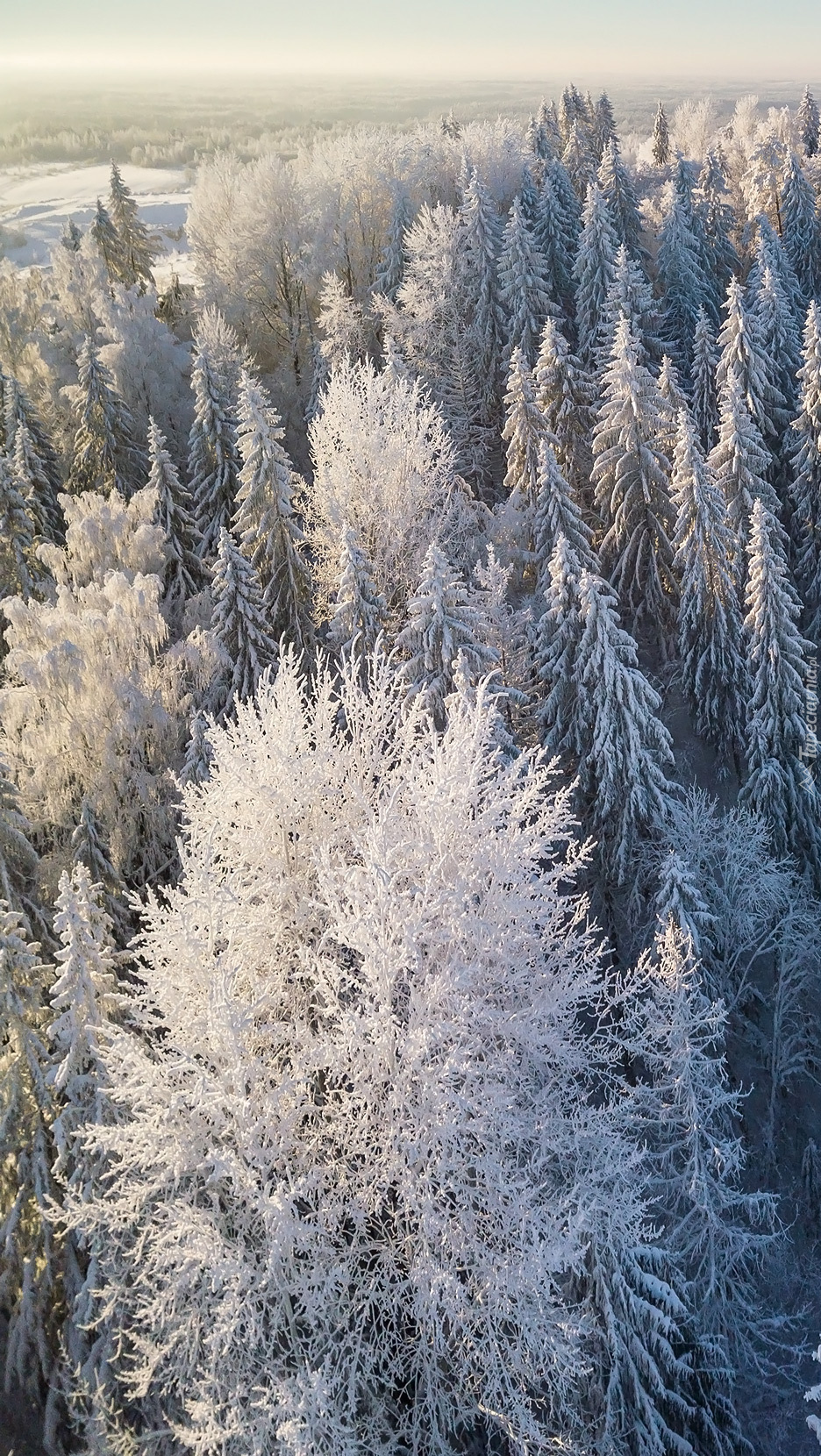 Edytor tapety: Oszronione drzewa z lotu ptaka