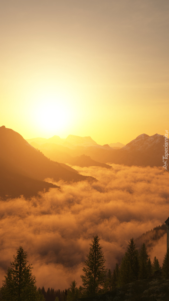Edytor tapety: Mglisty poranek w górach