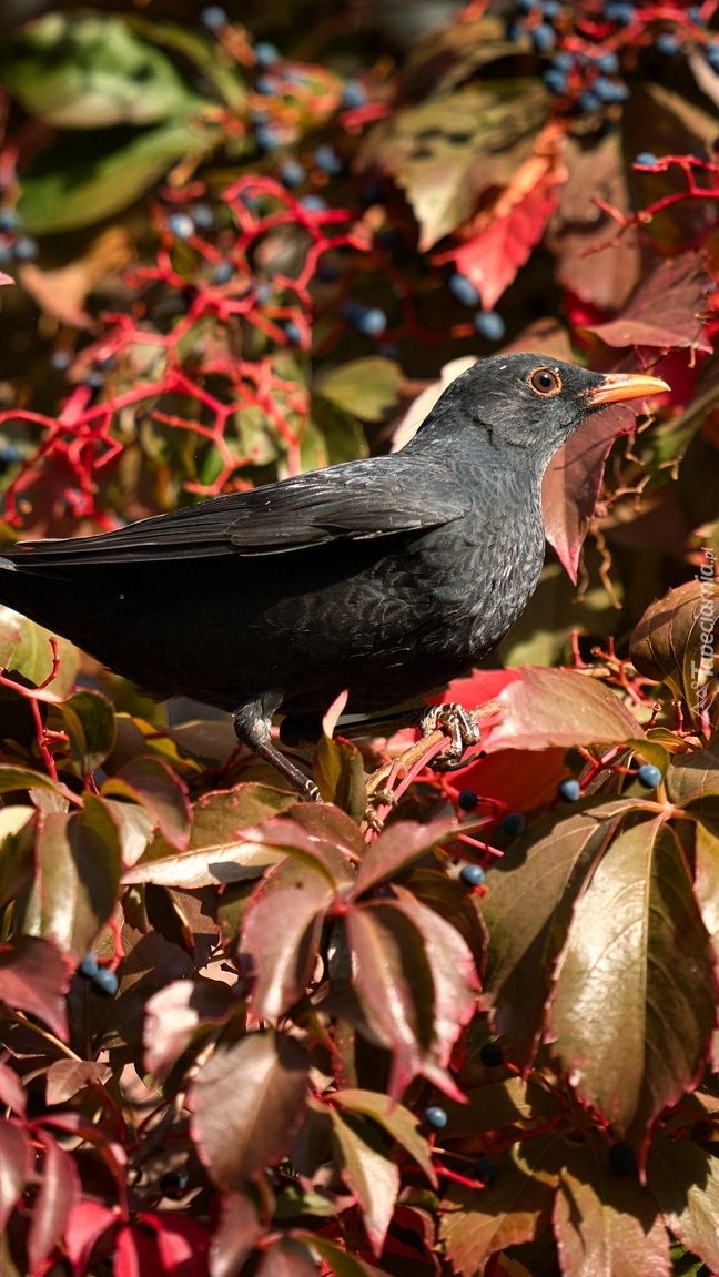 Edytor tapety: Kos na gałązkach z liśćmi