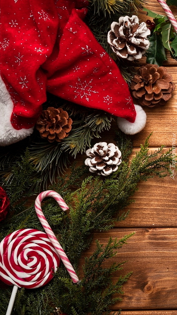 Edytor tapety: Czapka Mikołaja na gałązkach