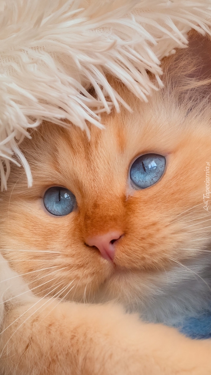 Edytor tapety: Niebieskooki kot pod kocem