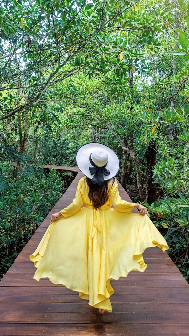 Edytor tapety: Kobieta w żółtej sukience i kapeluszu