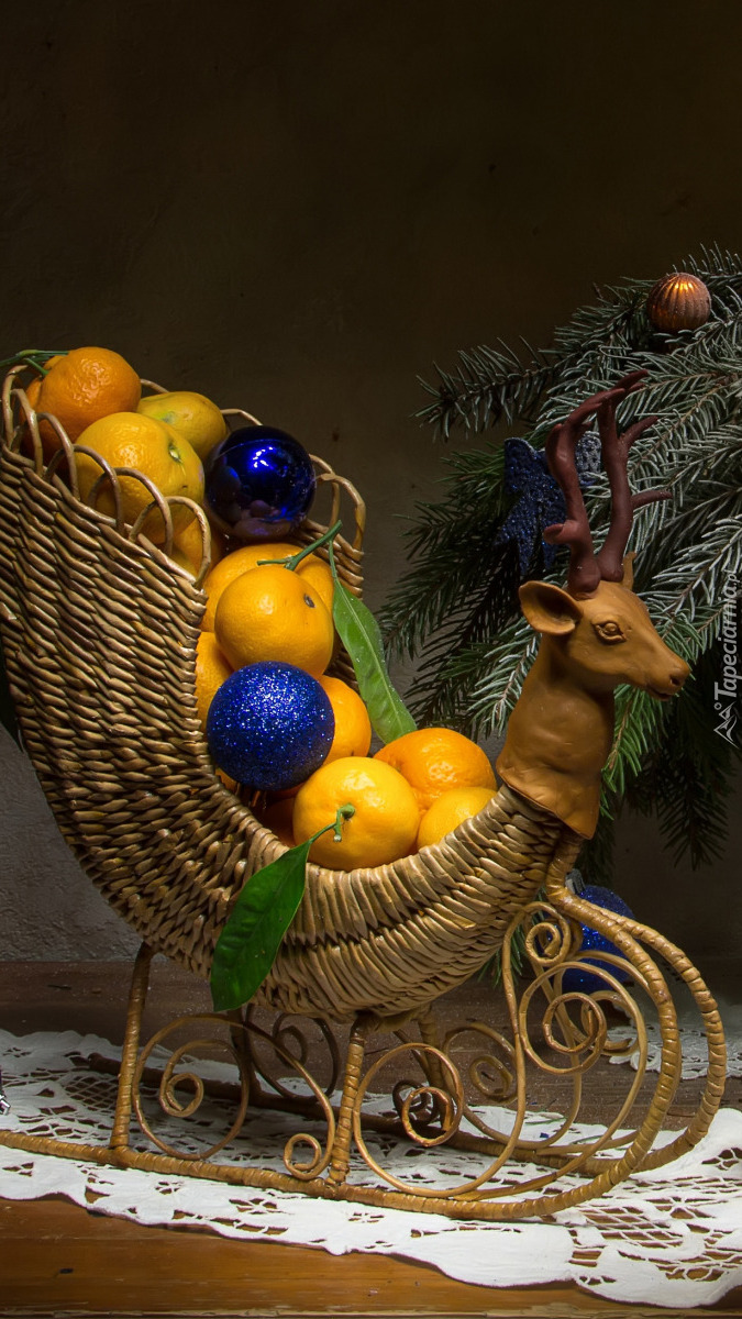 Edytor tapety: Mandarynki na wiklinowych sankach