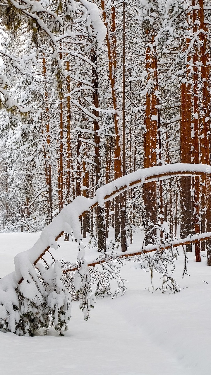 Edytor tapety: Pochyłe drzewo w zimowym lesie