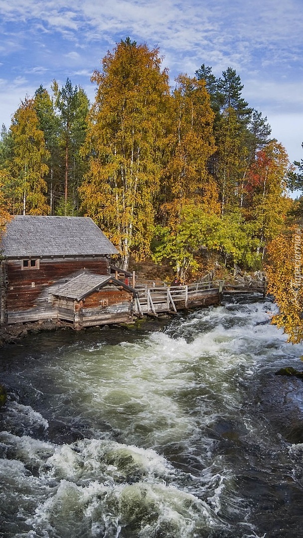 Edytor tapety: Młyn Myllykoski nad rzeką w Laponii