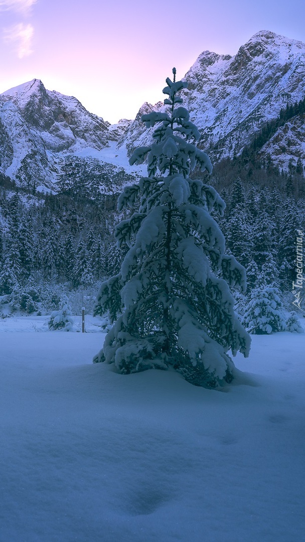Edytor tapety: Ośnieżone drzewa na tle Alp
