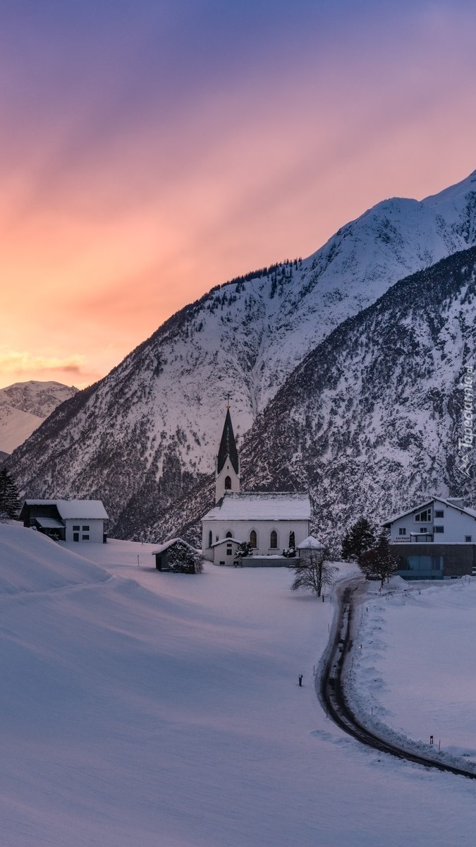Edytor tapety: Kościół w górskiej dolinie zimową porą