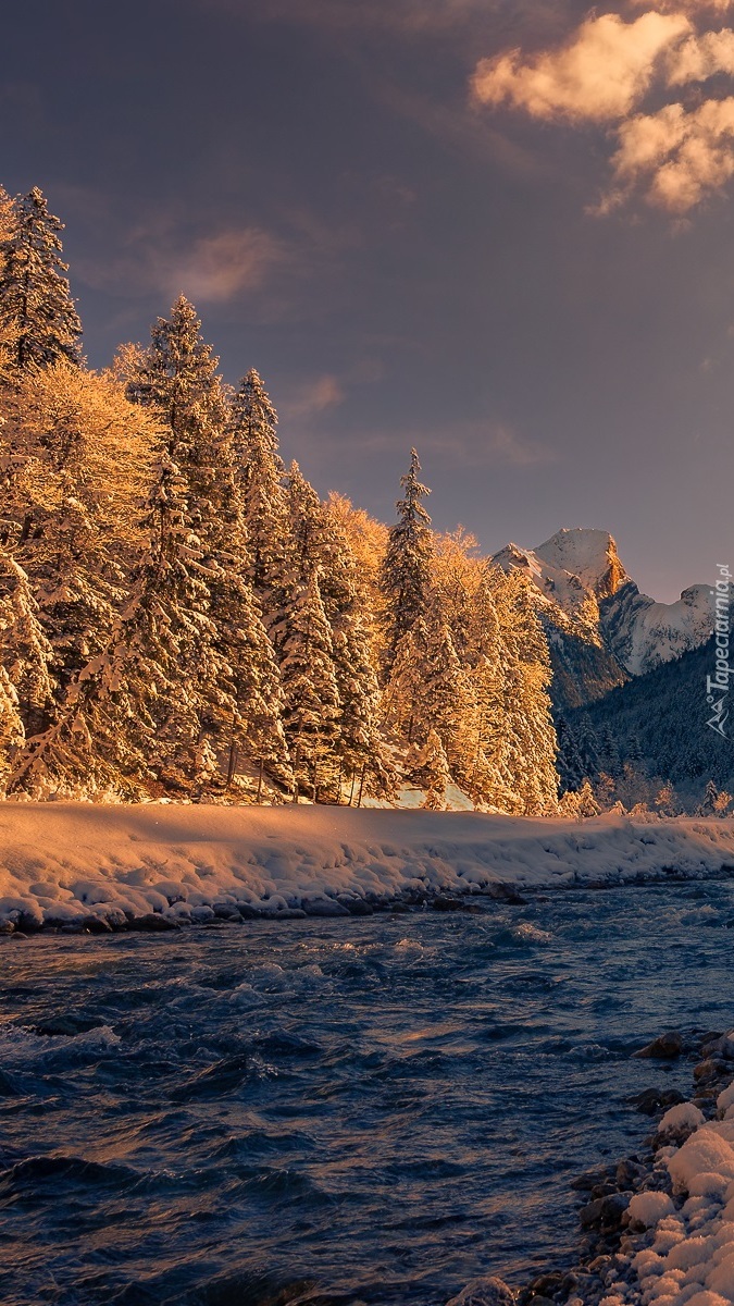 Edytor tapety: Ośnieżone drzewa nad rzeką