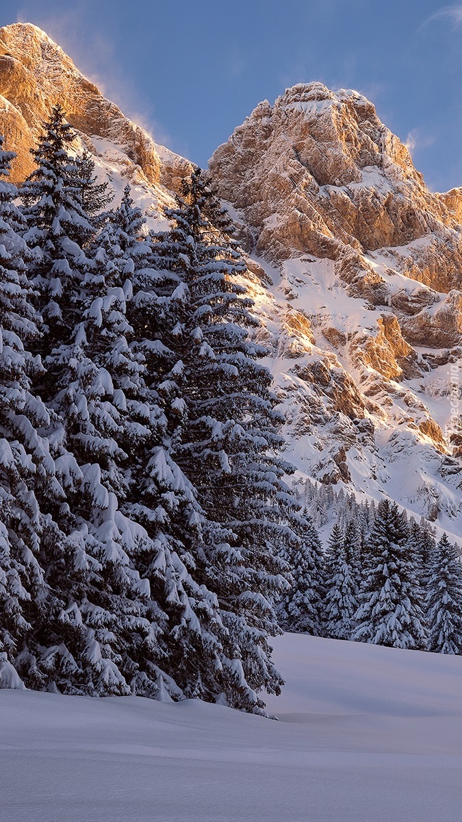 Edytor tapety: Ośnieżone drzewa w szwajcarskich górach
