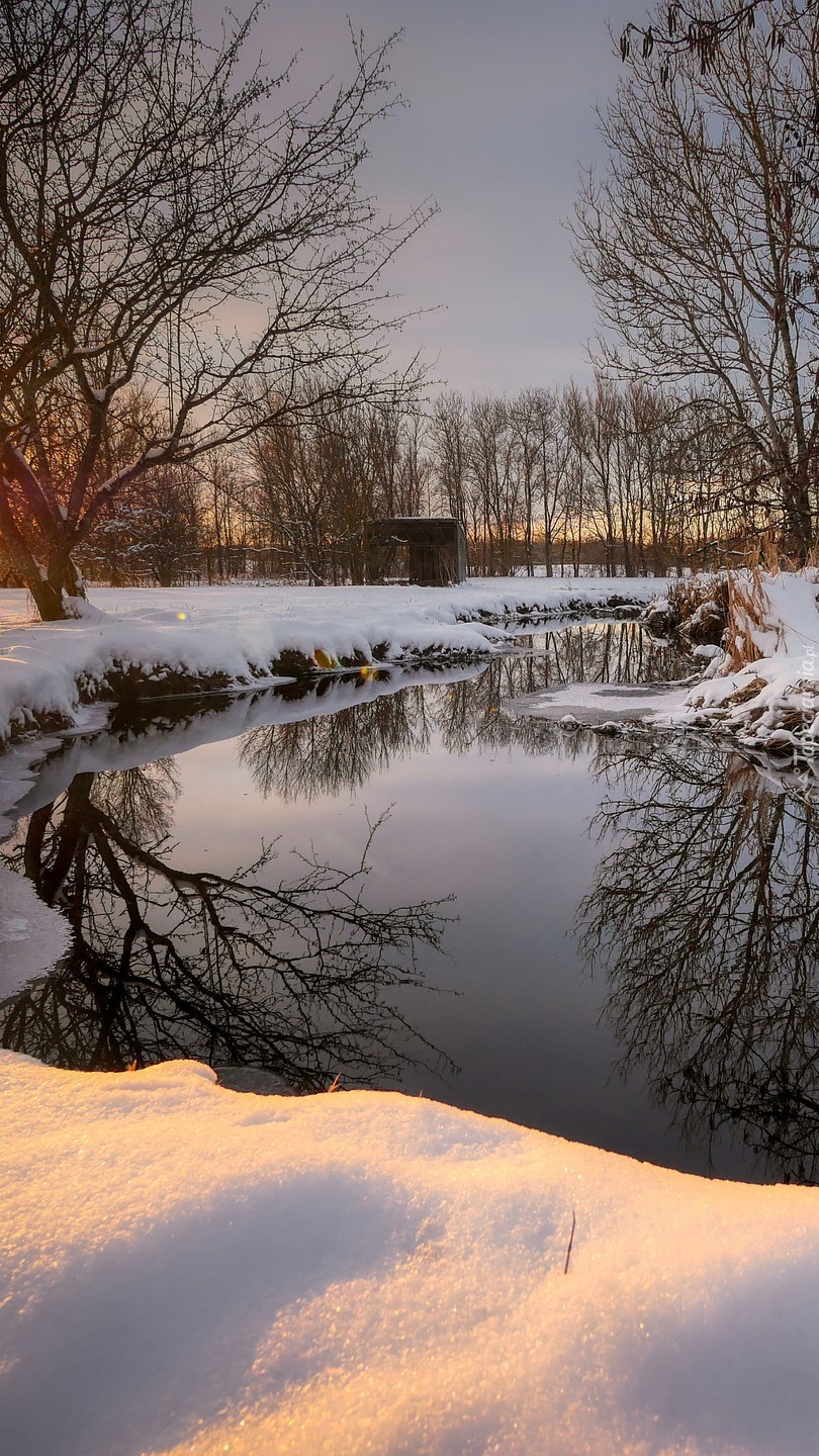 Edytor tapety: Drzewa w śniegu nad rzeką
