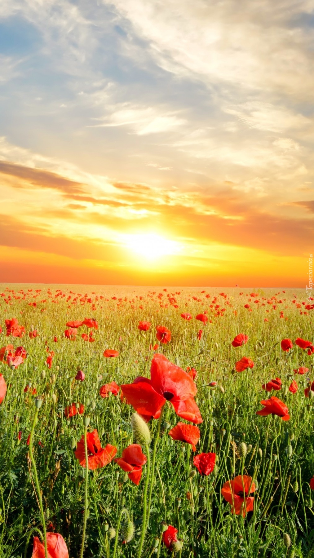 Edytor tapety: Zachód słońca na makowej łące