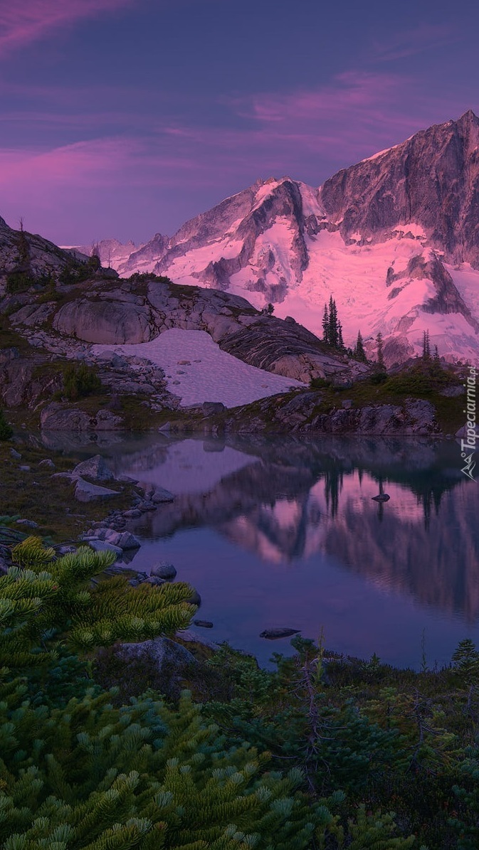 Edytor tapety: Odbicie ośnieżonych gór w jeziorze