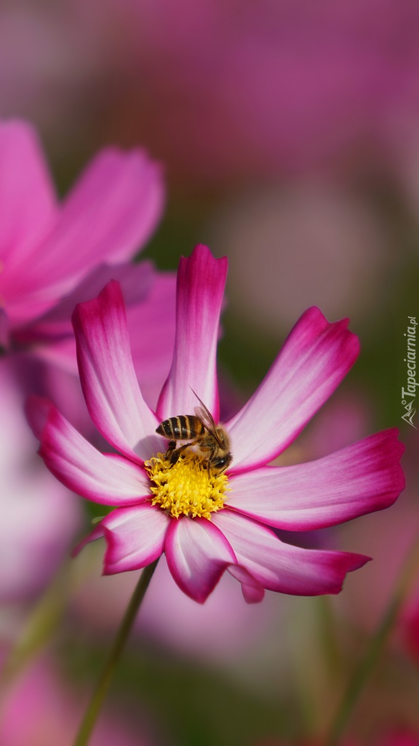 Edytor tapety: Pszczoła na różowej kosmei