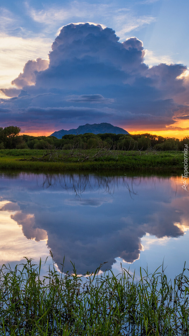 Edytor tapety: Odbicie ciemnych chmur w stawie