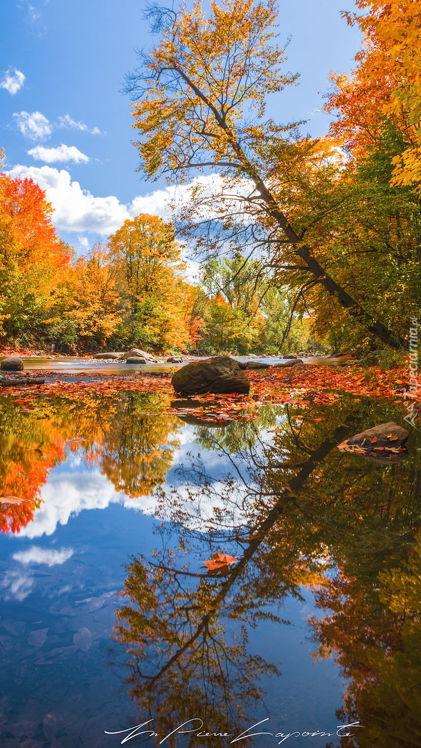 Edytor tapety: Odbicie jesiennych drzew w rozlewisku rzeki
