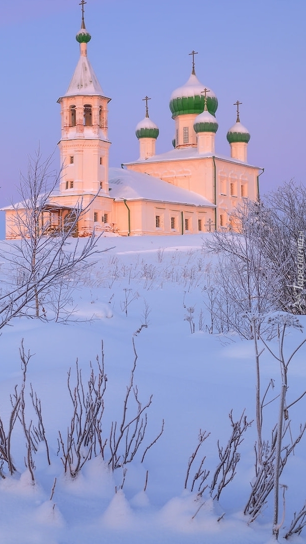Edytor tapety: Ośnieżona cerkiew na wzgórzu