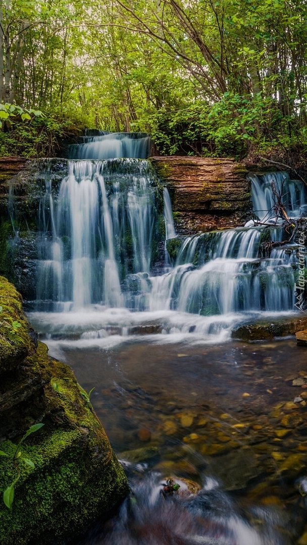 Edytor tapety: Próg skalny na leśnej rzece
