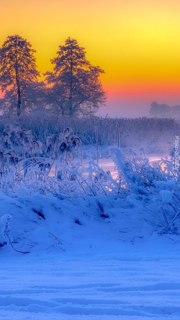 Edytor tapety: Oszronione drzewa i krzewy o poranku