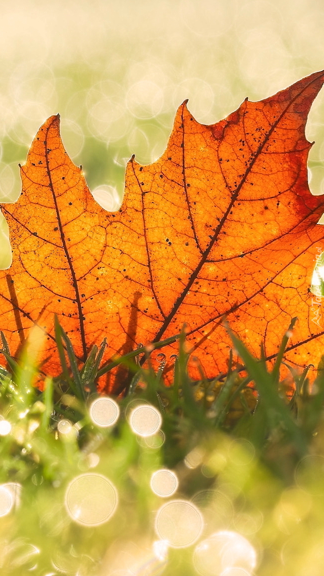 Edytor tapety: Brązowy liść w trawie