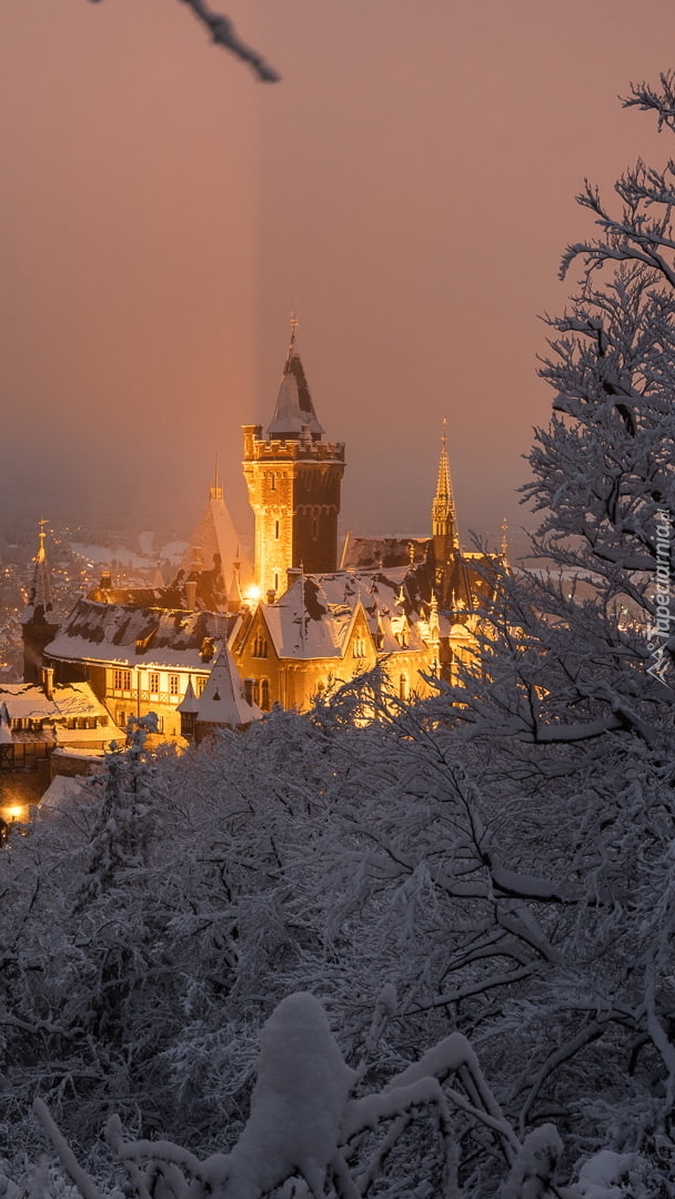 Edytor tapety: Oświetlony nocą Zamek Wernigerode