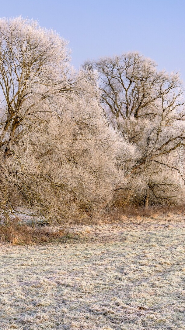 Edytor tapety: Oszronione drzewa na polu