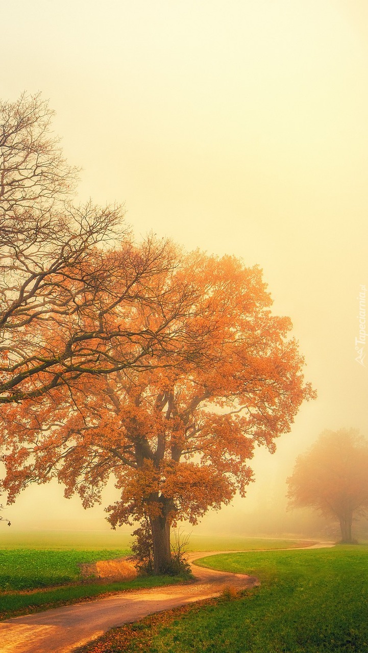 Edytor tapety: Drzewo przy drodze na łące