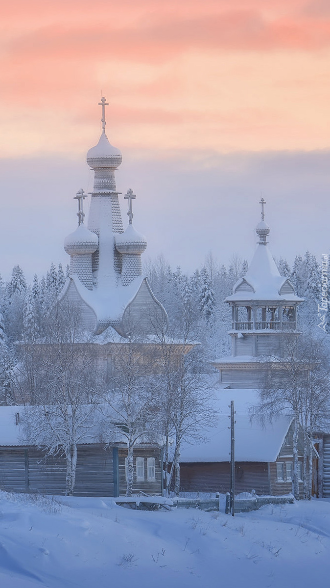 Edytor tapety: Ośnieżona cerkiew we wsi Kimzha