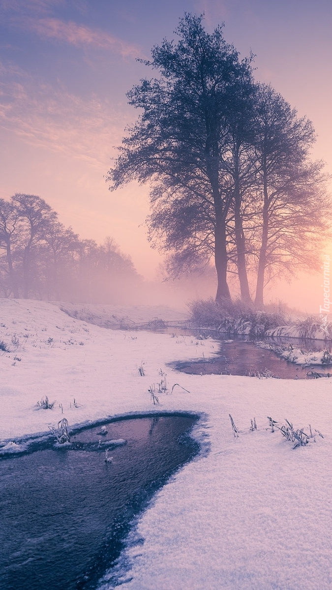 Edytor tapety: Drzewa na zaśnieżonym brzegu rzeki