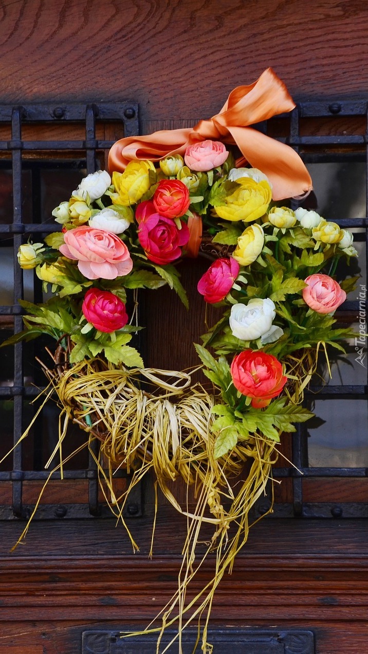 Edytor tapety: Wianek z kwiatów na kracie okiennej
