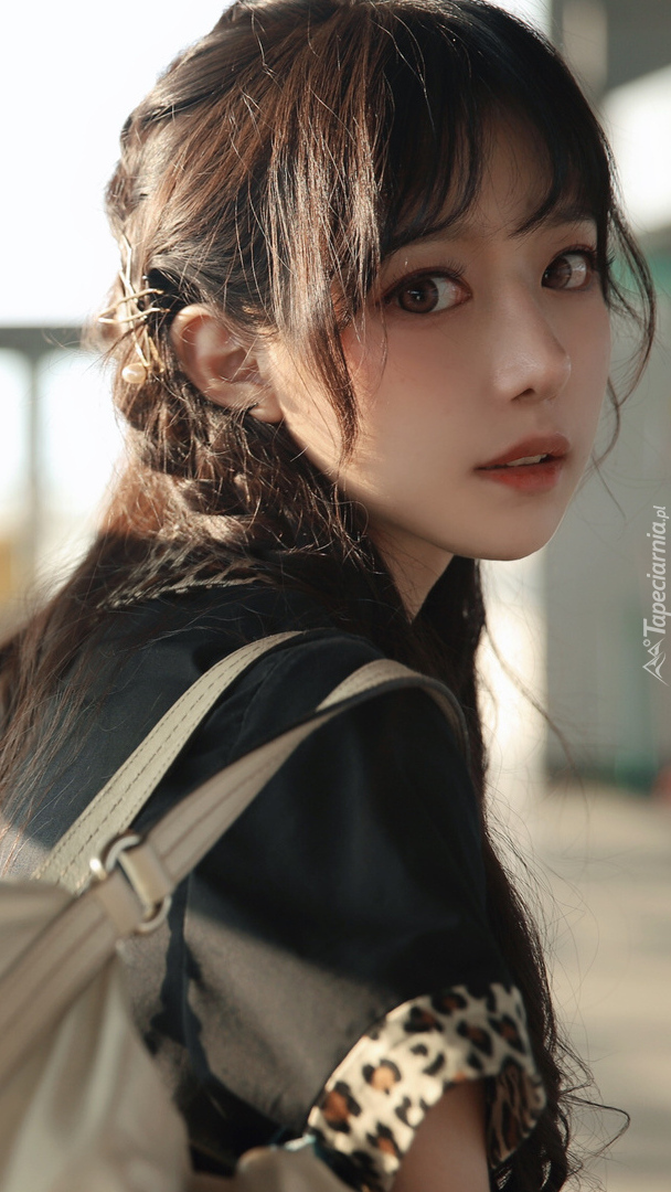 Edytor tapety: Ciemnowłosa dziewczyna z torbą
