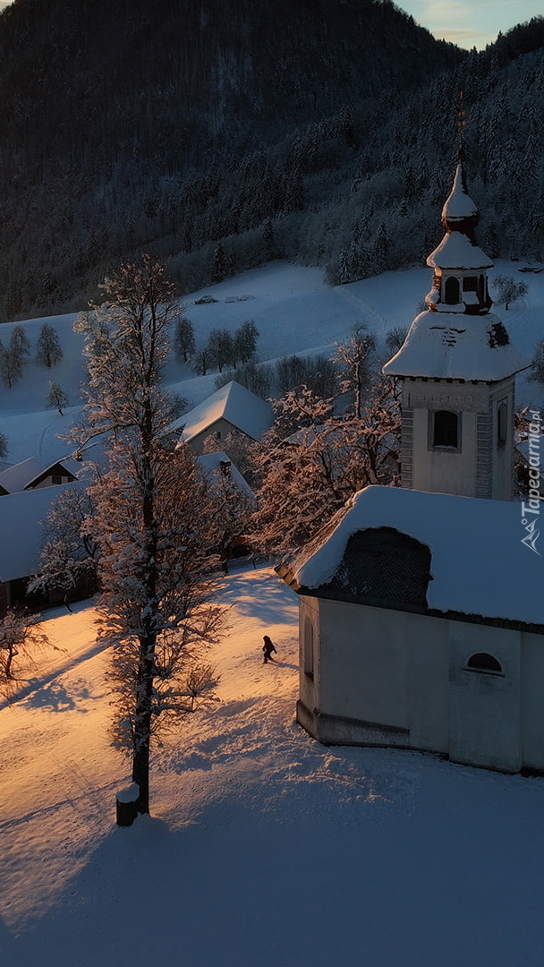 Edytor tapety: Ośnieżony kościół w górach Słowenii