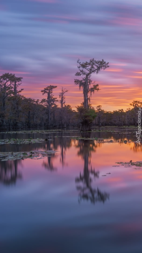 Edytor tapety: Cyprysy w jeziorze