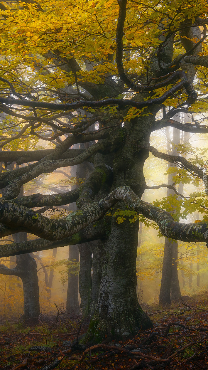 Edytor tapety: Rozłożyste drzewo z żółtymi liśćmi