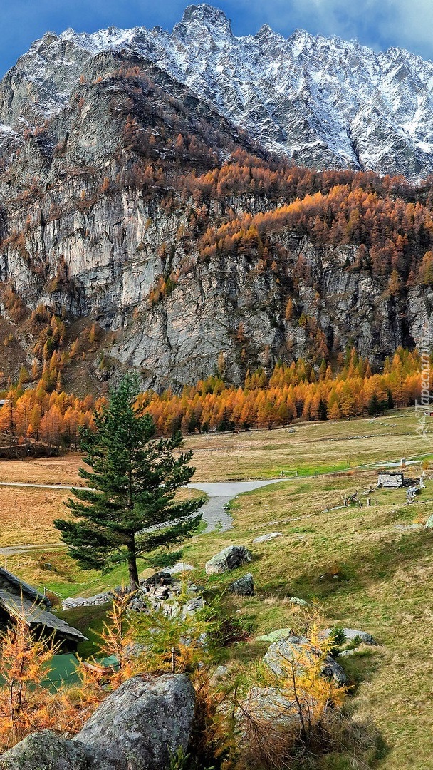 Edytor tapety: Pożółkłe modrzewie w górskiej dolinie