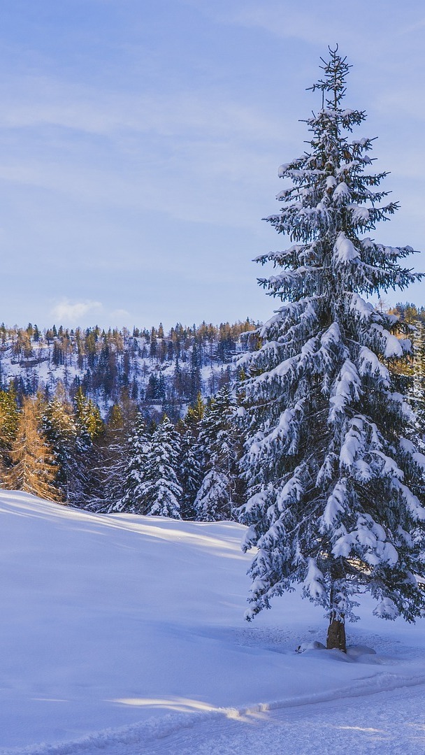 Edytor tapety: Ośnieżony las przy zasypanej śniegiem drodze