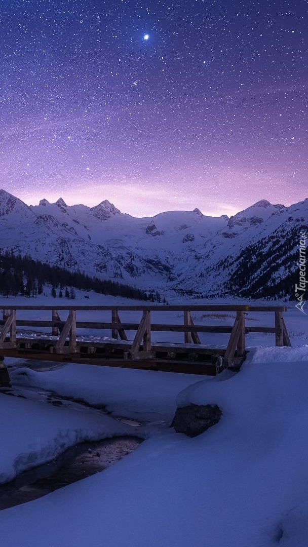 Edytor tapety: Mostek nad górską rzeką zimową porą