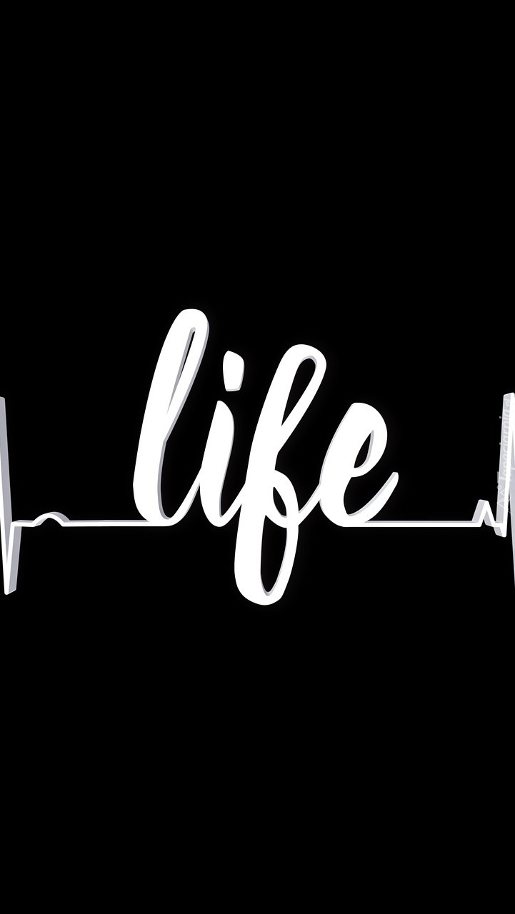Edytor tapety: Biały napis Life na czarnym tle
