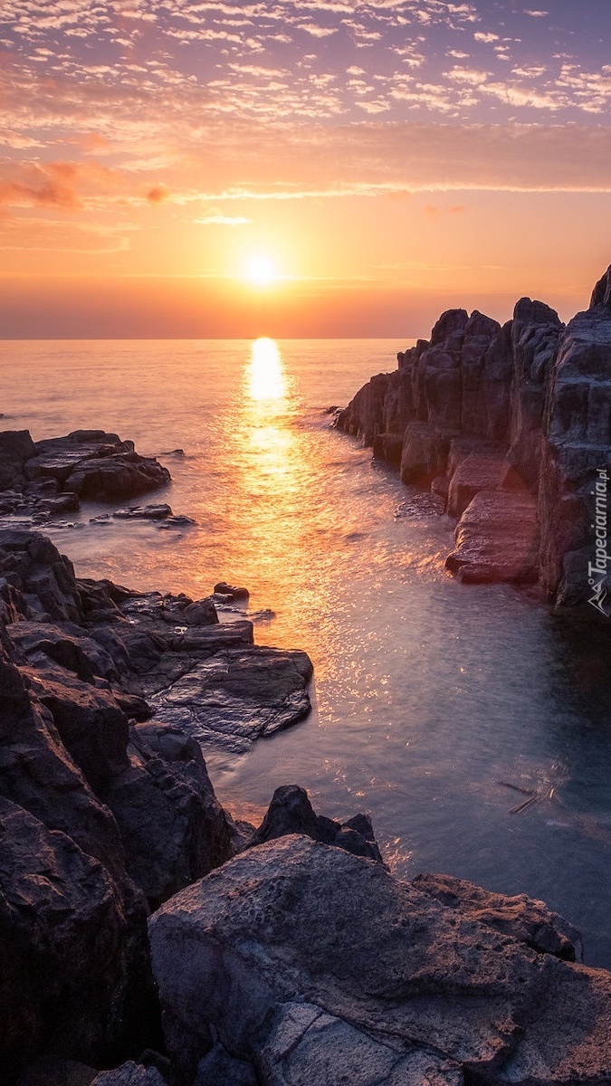 Edytor tapety: Klify Tojinbo w blasku zachodzącego słońca