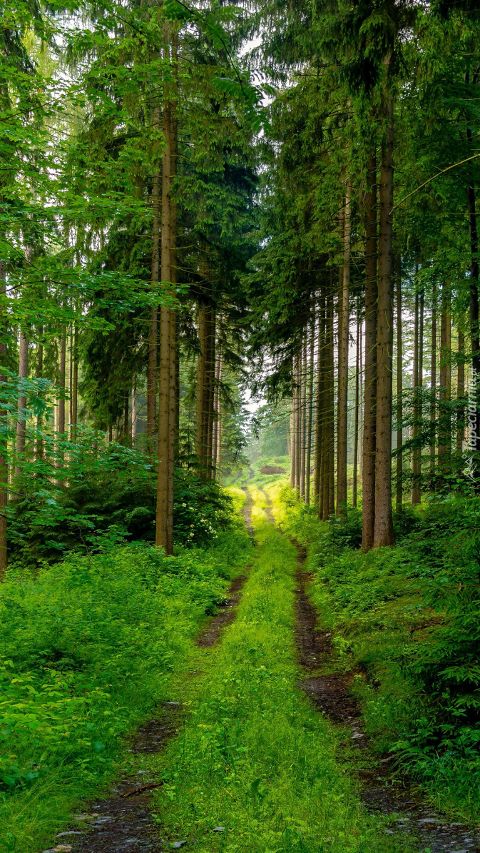 Edytor tapety: Wąska droga przez zielony las