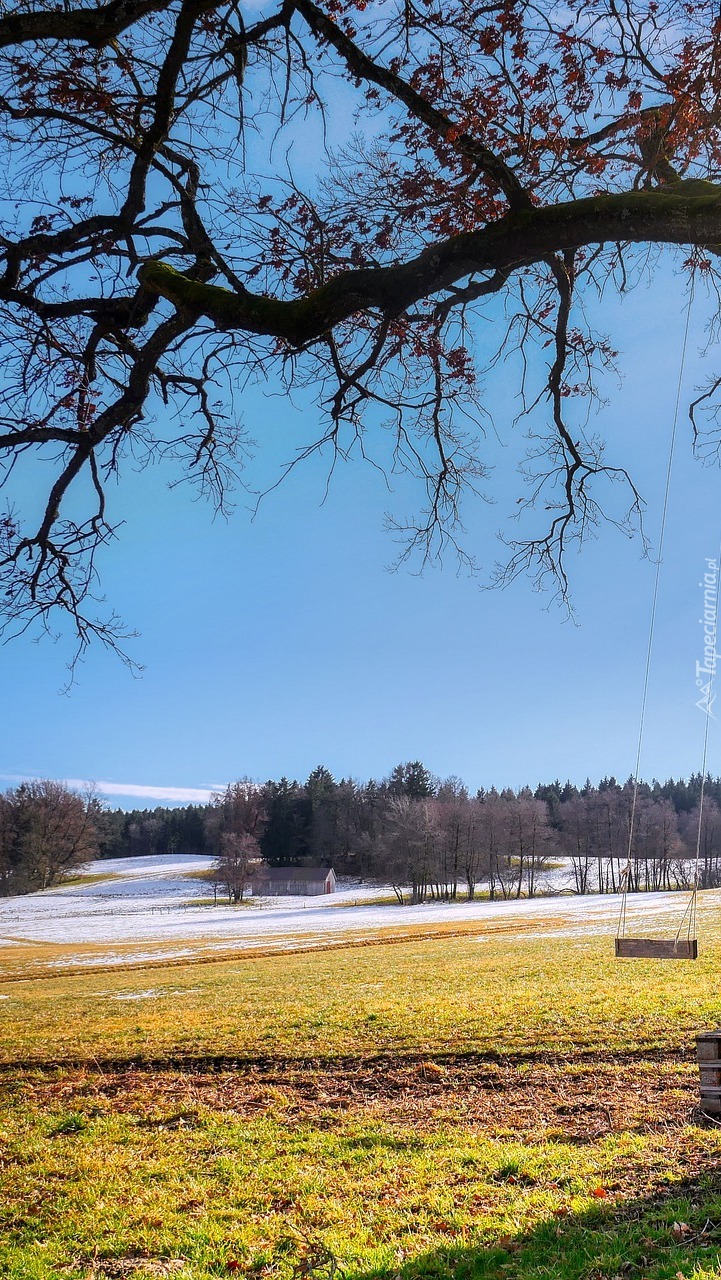 Edytor tapety: Huśtawka na drzewie na jesiennej łące