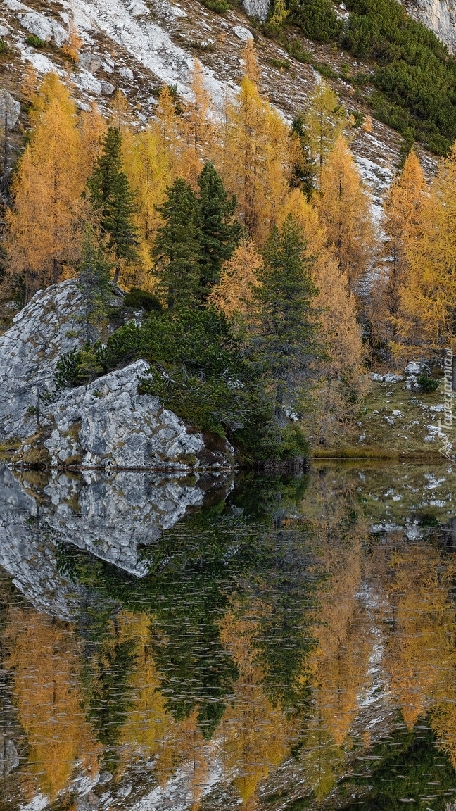 Edytor tapety: Modrzewie nad jeziorem Lago Federa