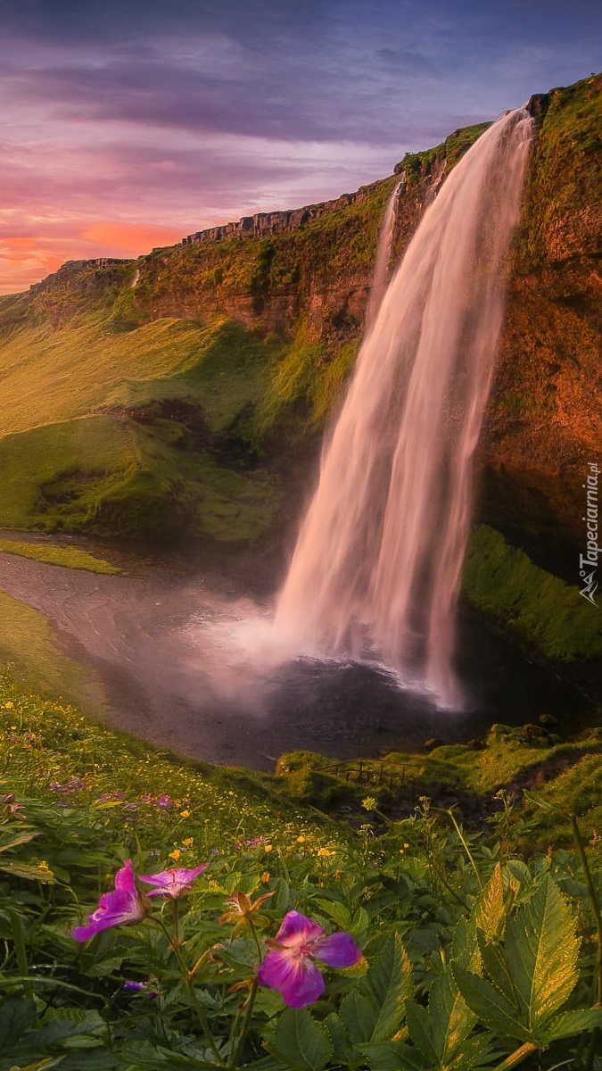 Edytor tapety: Wodospad Seljalandsfoss w blasku zachodzącego słońca